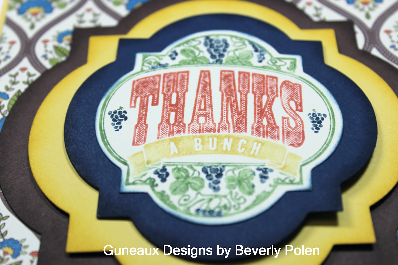 The sentiment, Thanks a Bunch, is the sneak peek! It is in the upcoming catalog and is part of a four-stamp stamp set, Friendship Preserves. The stamp set matches the Window Frames Collection Framelits! You can get these two items as a bundle, which means you’ll save 15% on the cost of buying them individually. This is a new feature from Stampin’ Up! in the Holiday Catalog. Isn’t that great!! This picture is a closeup of the sentiment.